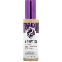 Enough 8 Peptide Full Cover Perfect Foundation SPF 50+ PA+++ to nawilżający podkład do twarzy z 8 peptydami, które mają zdolność do penetracji skóry oraz stymulacji procesów biologicznych. Działają jak sygnał dla skóry, aby zwiększyć produkcję kolagenu, białka strukturalnego, które jest kluczowe dla elastyczności i jędrności skóry. W rezultacie skóra staje się bardziej jędrna i elastyczna, a zmarszczki mogą być mniej widoczne. Działają jak humektant, przyciągają i zatrzymują wilgoć w skórze, co prowadzi do głębokiego nawilżenia i wygładzenia. Enough 8 Peptide zapewnia wysokie krycie niedoskonałości, aktywnie wspierając procesy regeneracji skóry. Dodatkowo zapewnia wysoką ochronę SPF 50+/PA+++, chroniąc przed szkodliwym promieniowaniem i zapobiegając przedwczesnemu starzeniu się skóry.